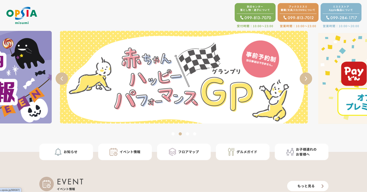 - 店舗:オプシアミスミ 1F(フロアガイド記載)